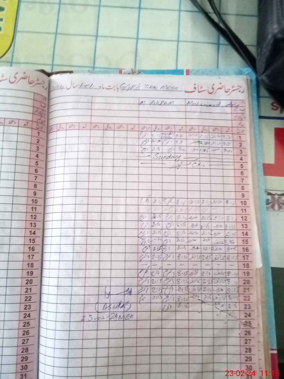 | CNIC | Full Name | Designation | R/C | Absence During Last Calender Month |