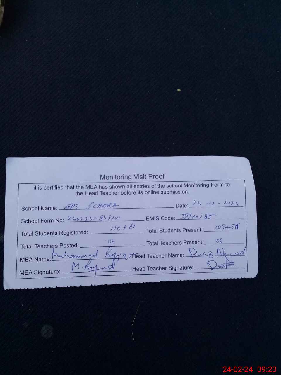 | EMIS Code: 39210185 | Name of School: GPS SOHARA | |||