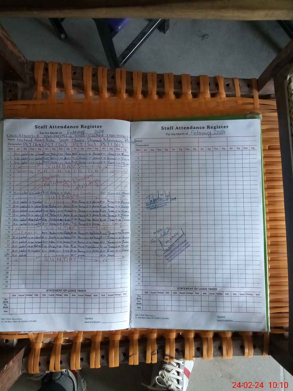 | CNIC | Full Name | Designation | R/C | Absence During Last Calender Month |