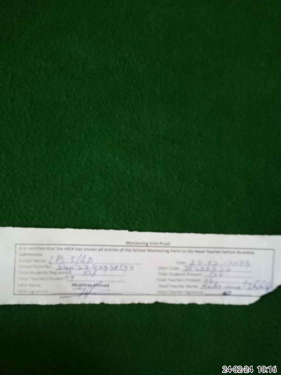 | Certified that this School was Inspected by the Undersigned MEA/DMO Today and the Information Stated Above is as Per Record. | |||||