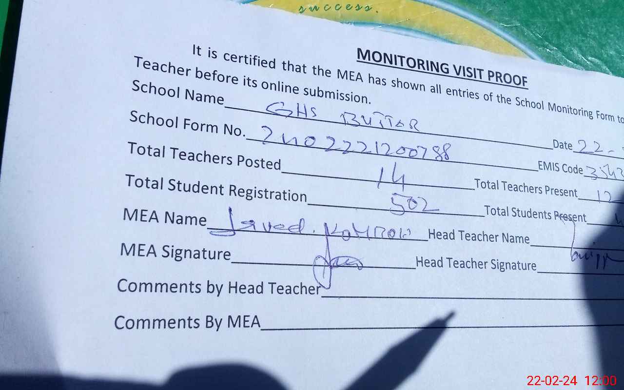 | EMIS Code: 35430024 | Name of School: GHS BUTTAR | |||