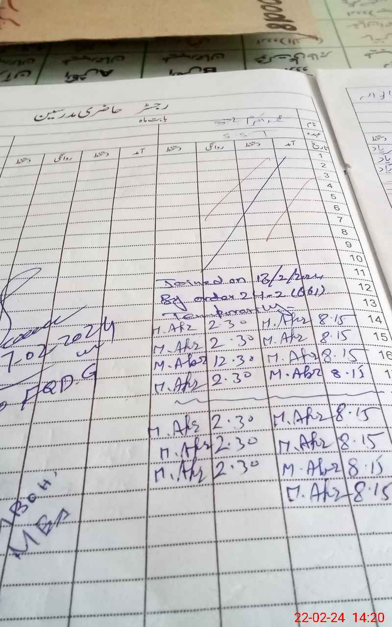 | CNIC | Full Name | Designation | R/C | Absence During Last Calender Month |