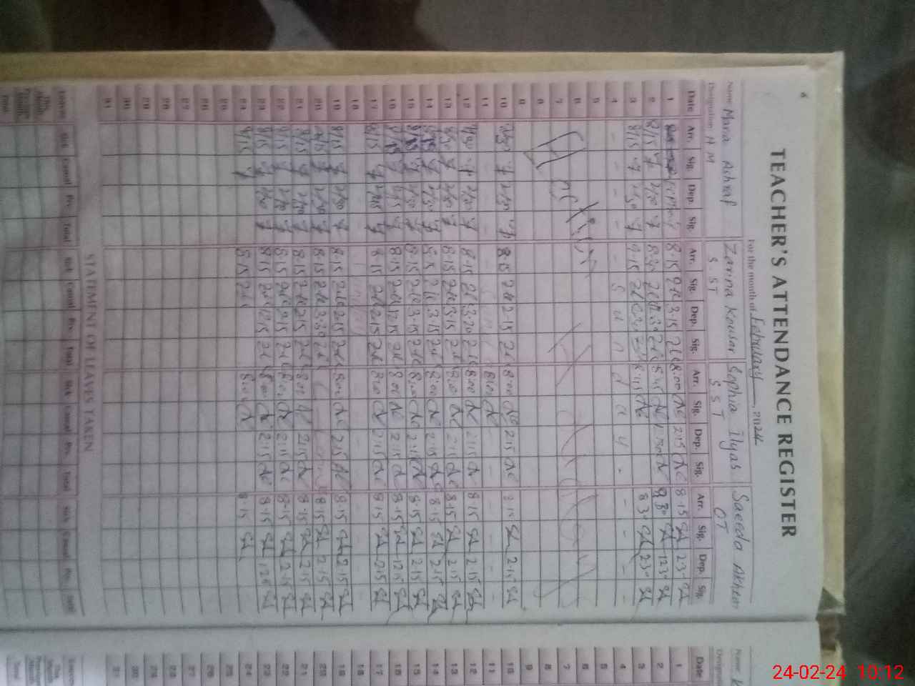 | Leave | Duty | Absent | Maternity | Medical | Ex- Pak |