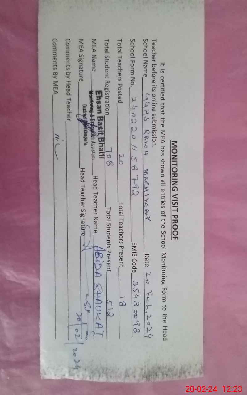 | EMIS Code: 35430098 | Name of School: GGHS RAKH MACHIKAY | |||
