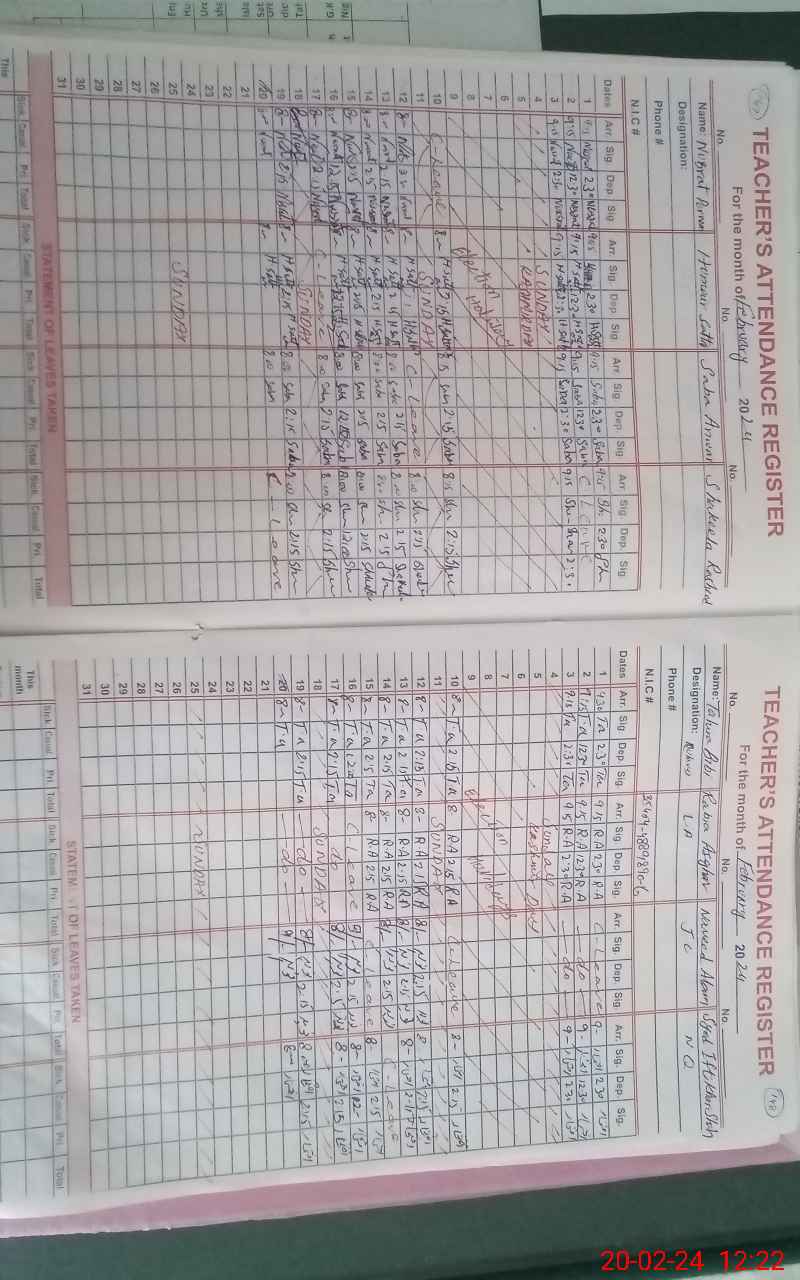 | CNIC | Full Name | Designation | R/C | Absence During Last Calender Month |
