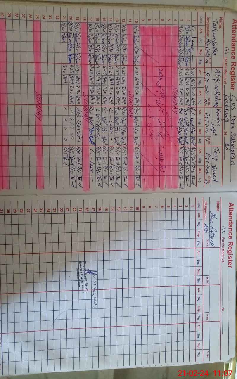 | CNIC | Full Name | Designation | R/C | Absence During Last Calender Month |