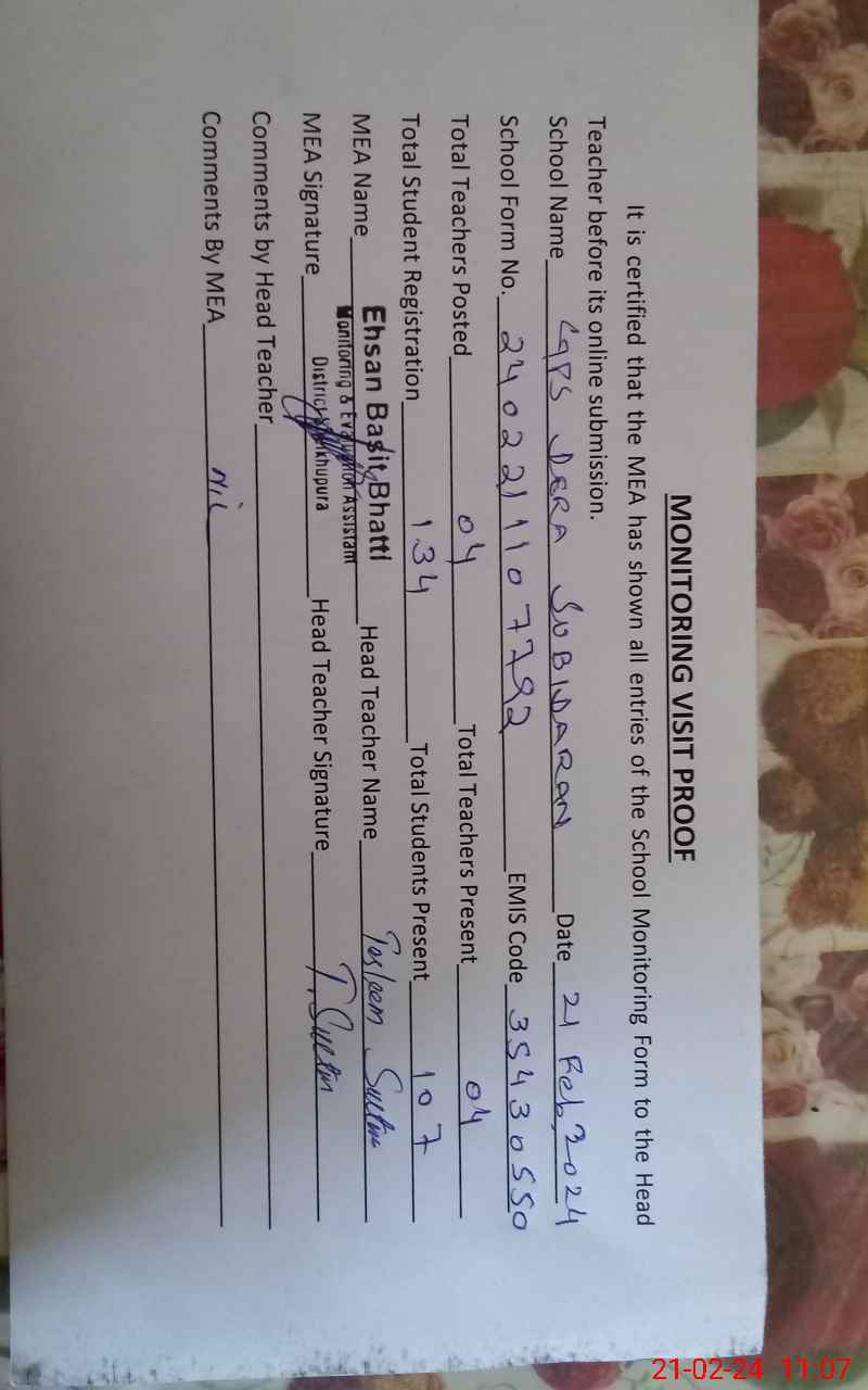 | EMIS Code: 35430550 | Name of School: GPS DERA SUBIDARAN | |||