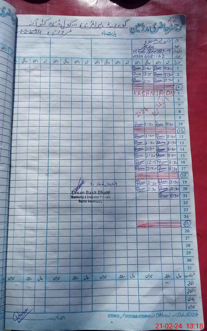 | Name: Ta**** Hu**** Designation: (School Headmaster's/Headmistress's) PTC Phone/Cell Number: 03**** |
