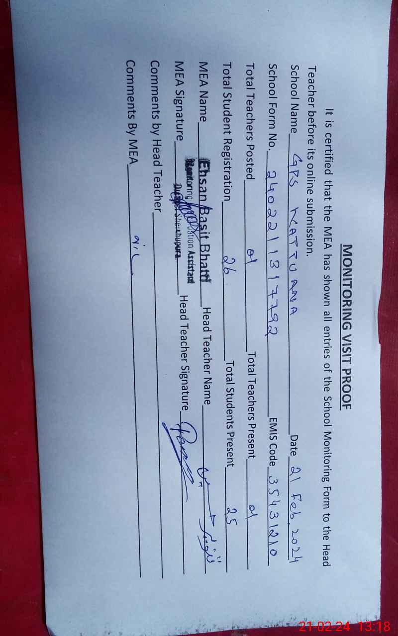 | EMIS Code: 35431210 | Name of School: GPS DERA KATU ANA | |||
