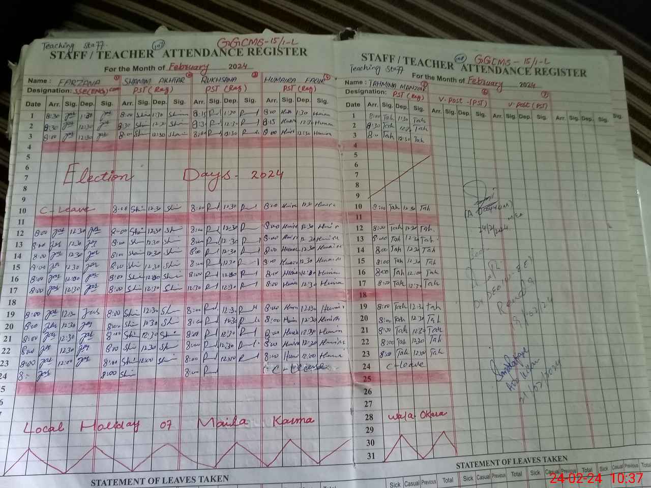 | Leave | Duty | Absent | Maternity | Medical | Ex- Pak |