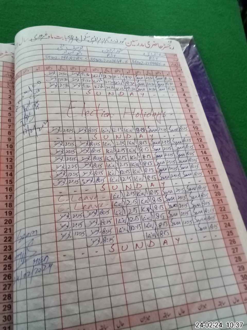 | Leave | Duty | Absent | Maternity | Medical | Ex- Pak |