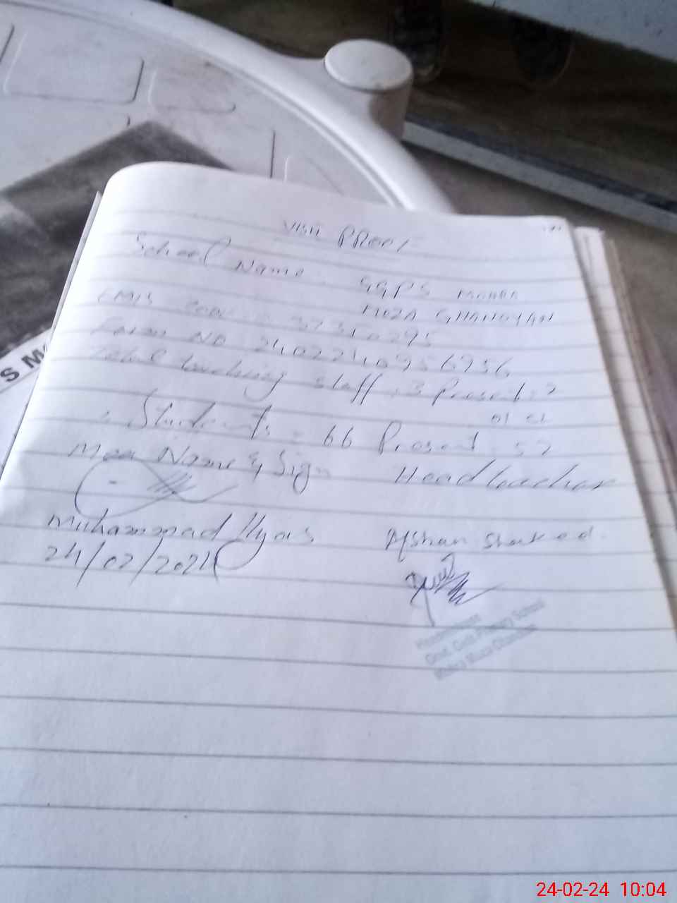 | Name: Af**** Sh**** Designation: (School Headmaster's/Headmistress's) PST Phone/Cell Number: 03**** |