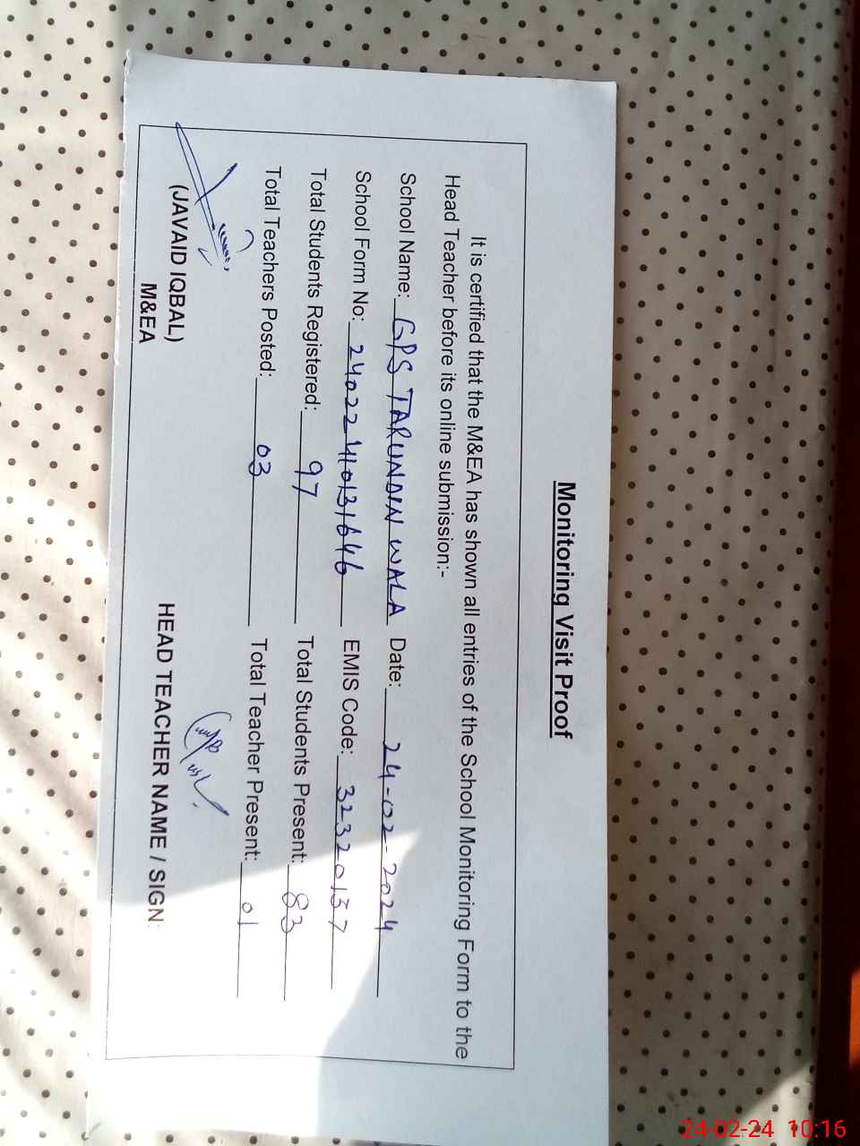 | EMIS Code: 32320137 | Name of School: GPS TARANDIN | |||