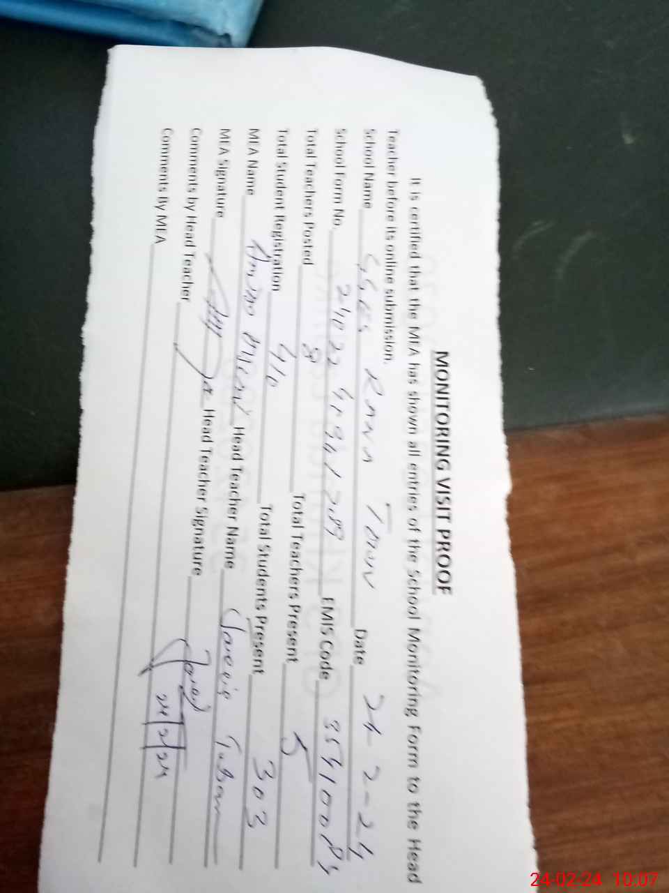 | Certified that this School was Inspected by the Undersigned MEA/DMO Today and the Information Stated Above is as Per Record. | |||||