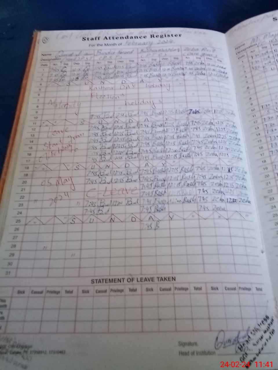 | Remarks (Use Separate Page if Required): No sanctioned leave is available against the absent teacher | |||||