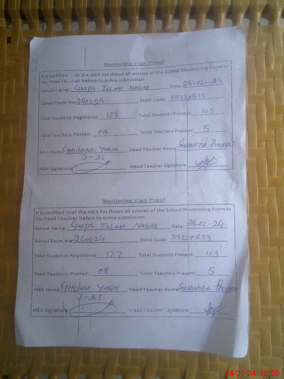 | EMIS Code: 33220833 | Name of School: GMPS ISLAM NAGAR | |||