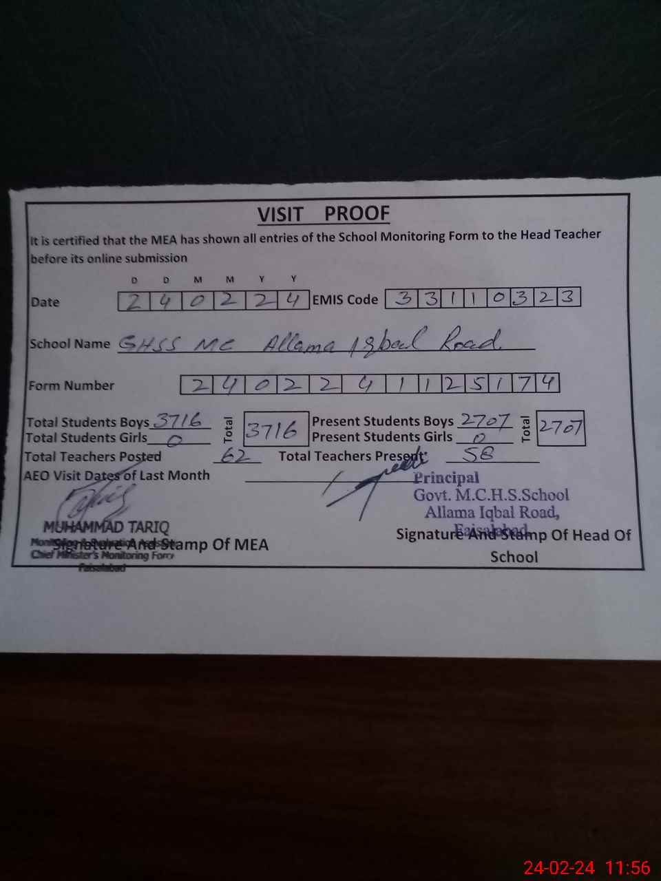 | EMIS Code: 33110323 | Name of School: GHSS MC ALAMA IQBAL FSD | |||