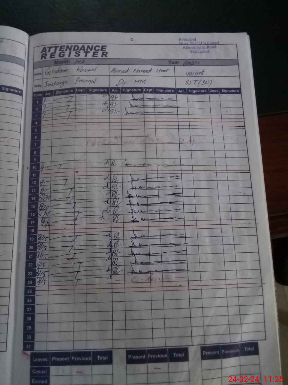 | CNIC | Full Name | Designation | R/C | Absence During Last Calender Month |