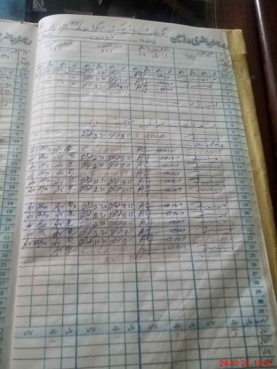 | Leave | Duty | Absent | Maternity | Medical | Ex- Pak |