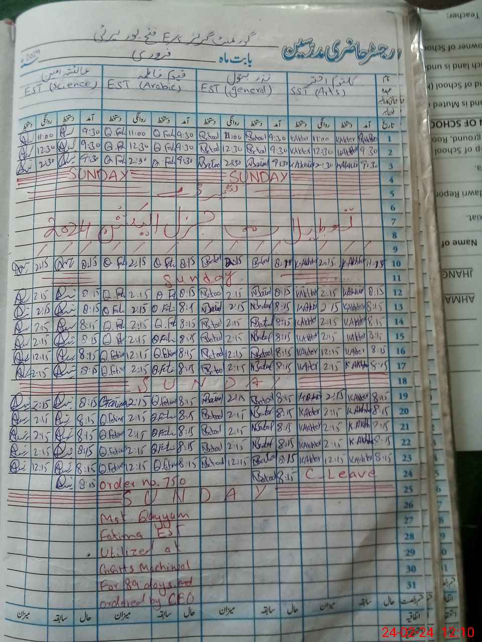 | CNIC | Full Name | Designation | R/C | Absence During Last Calender Month |