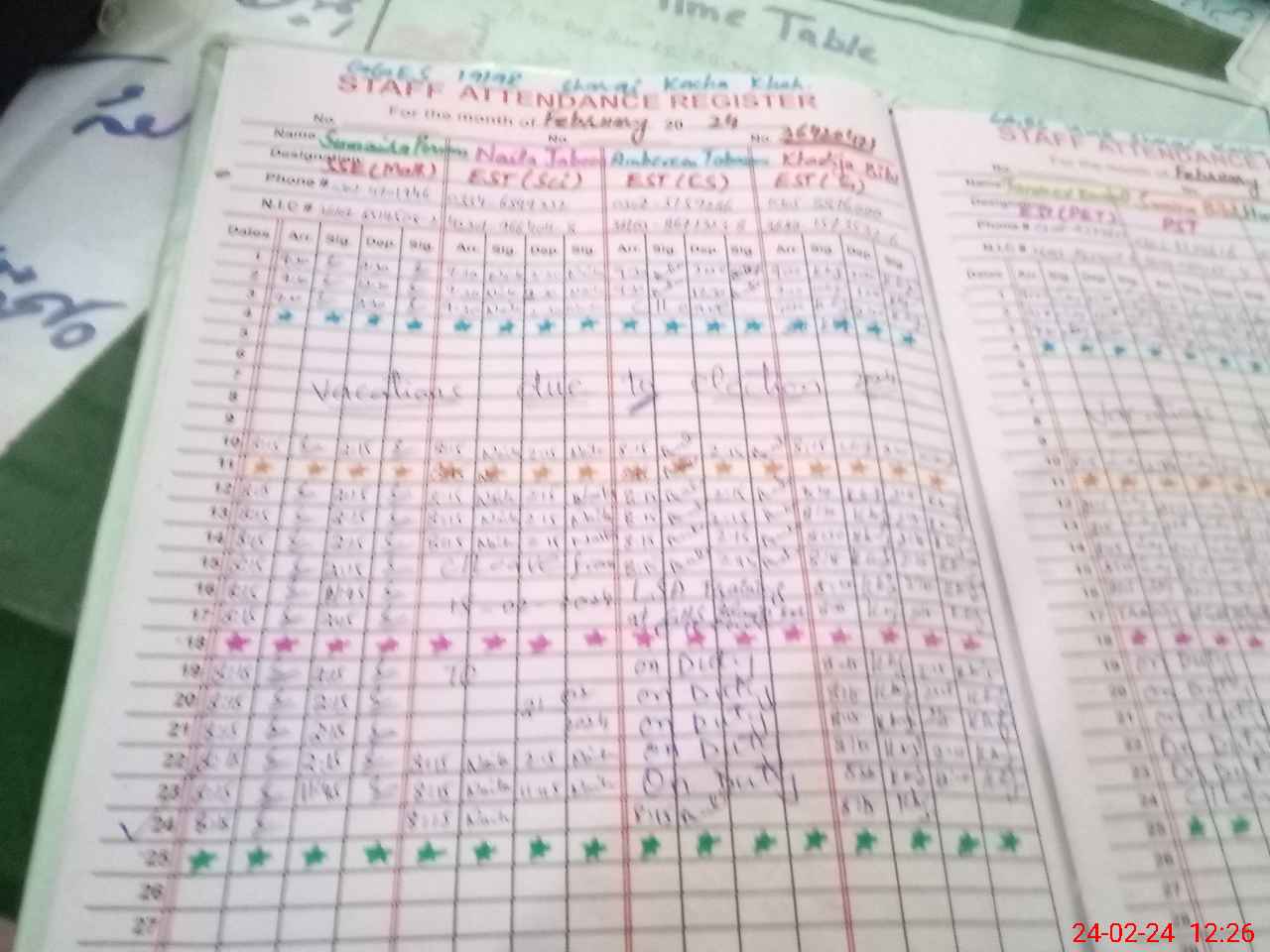 | CNIC | Full Name | Designation | R/C | Absence During Last Calender Month |