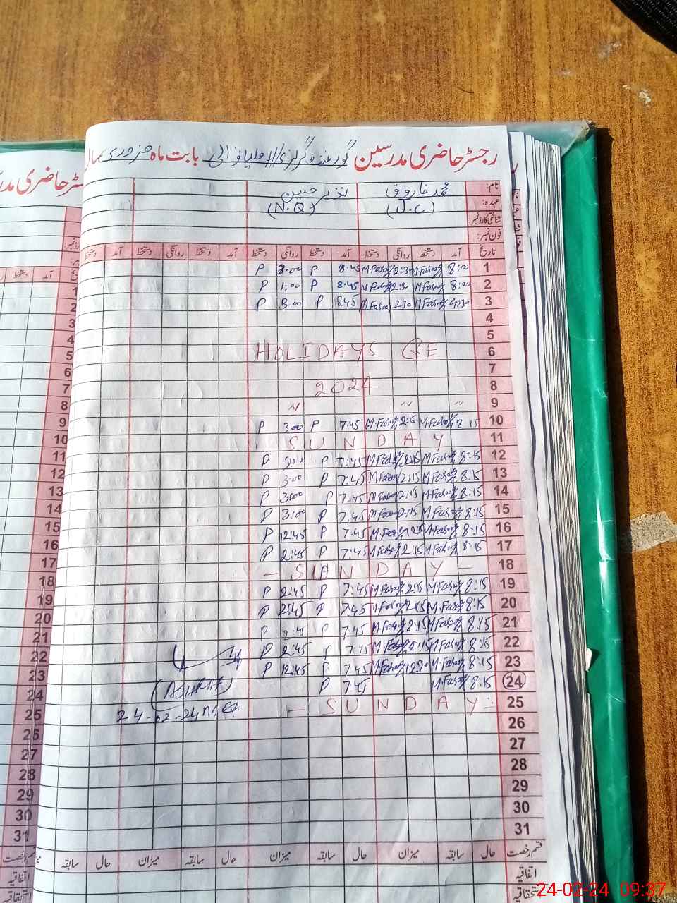 | CNIC | Full Name | Designation | R/C | Absence During Last Calender Month |