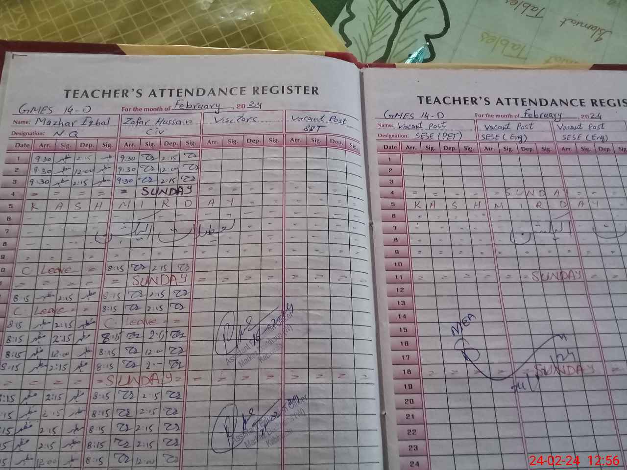 | CNIC | Full Name | Designation | R/C | Absence During Last Calender Month |