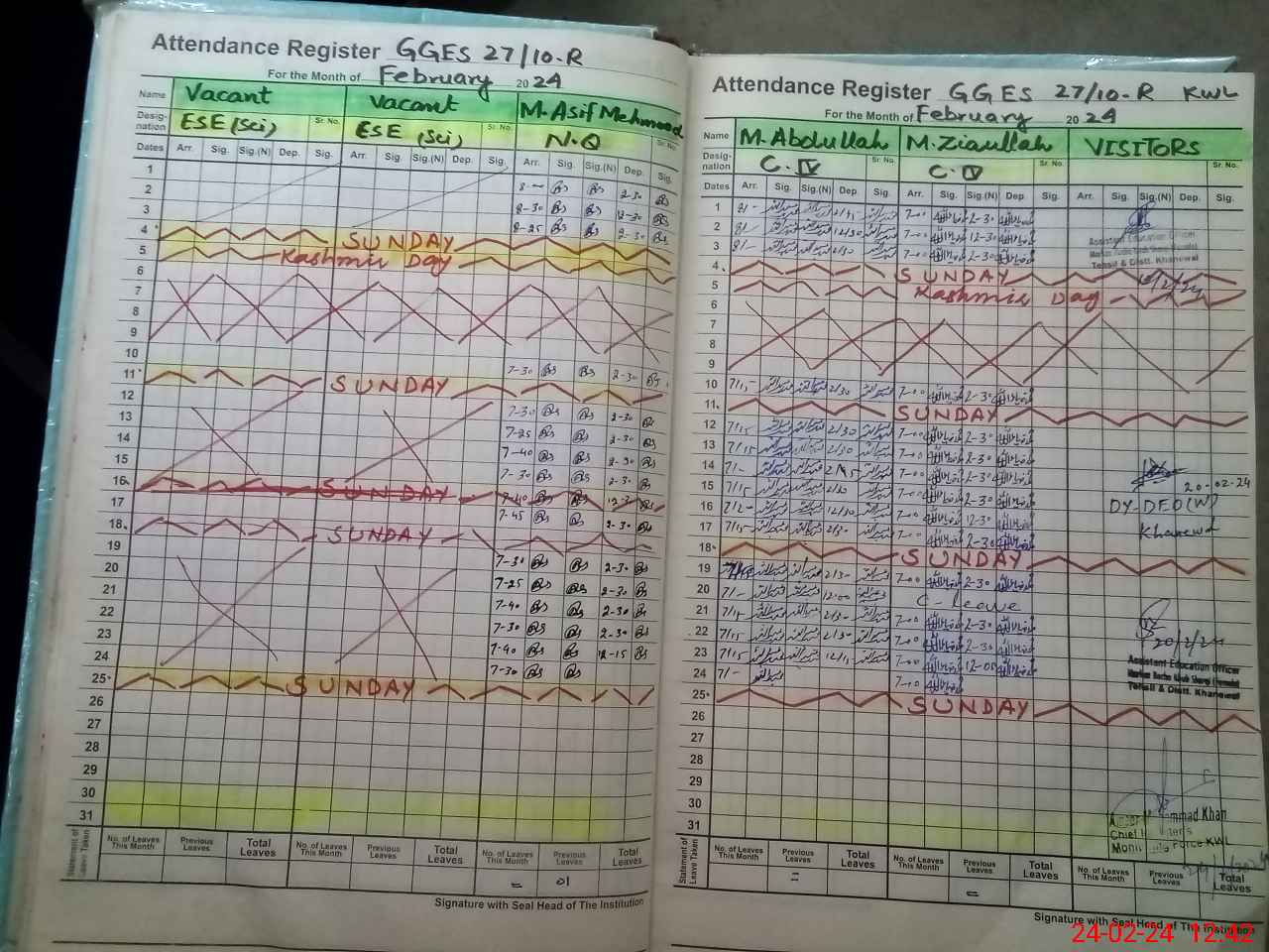 | CNIC | Full Name | Designation | R/C | Absence During Last Calender Month |