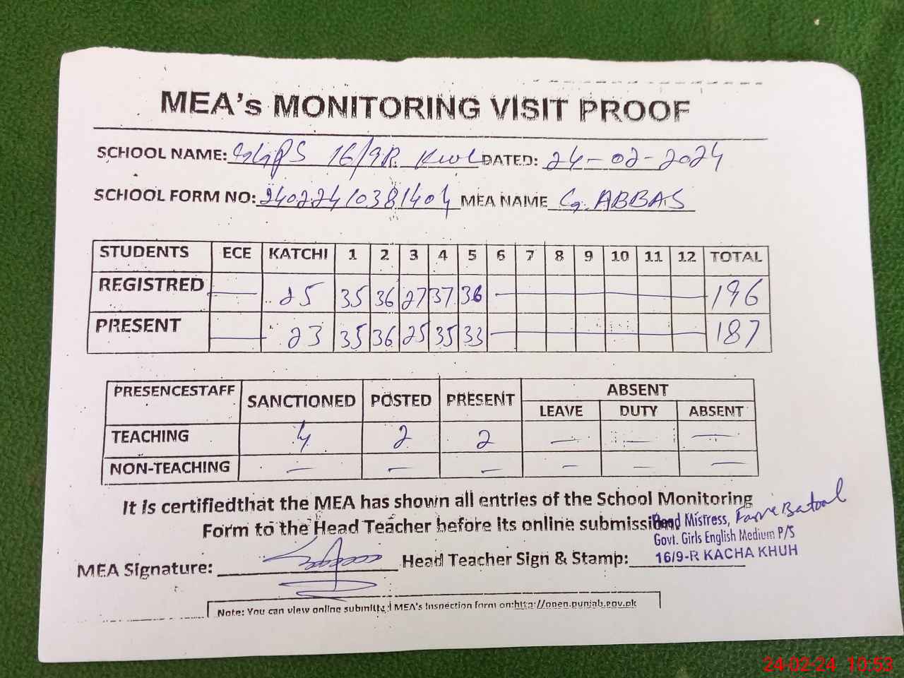 | EMIS Code: 36420463 | Name of School: GGPS 16/9-R, KACHA KHUH | |||