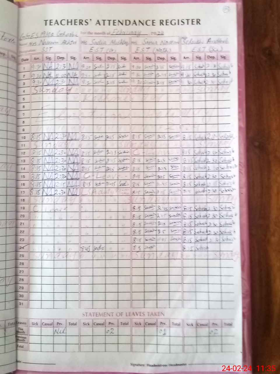| Leave | Duty | Absent | Maternity | Medical | Ex- Pak |