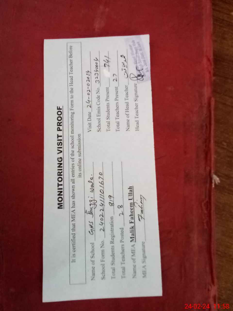 | EMIS Code: 32340004 | Name of School: GHSS JHUGGI WALA | |||