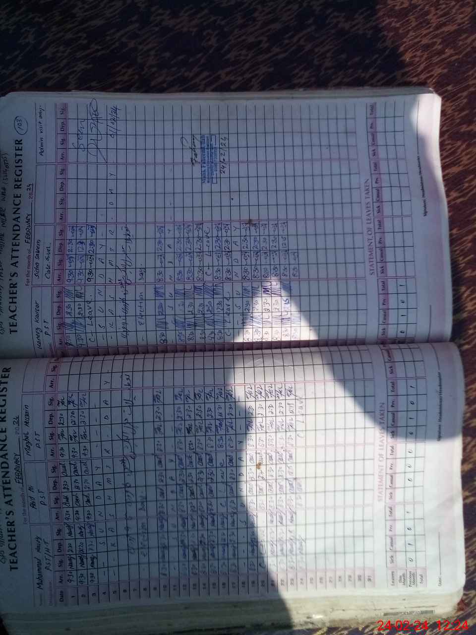 | 32**** | Ma**** Hu**** | PST | Regular | 1 | 0 | 0 | 0 | 0 | 0 | 0 | 0 | 1 | Casual |