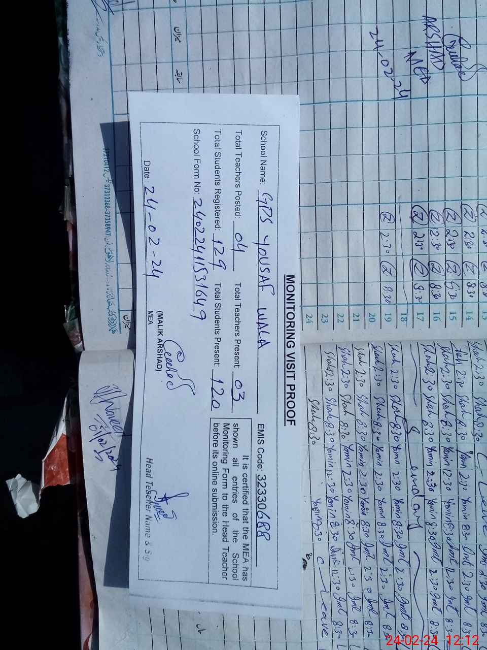 | EMIS Code: 32330688 | Name of School: GPS YOUSAF WALA | |||