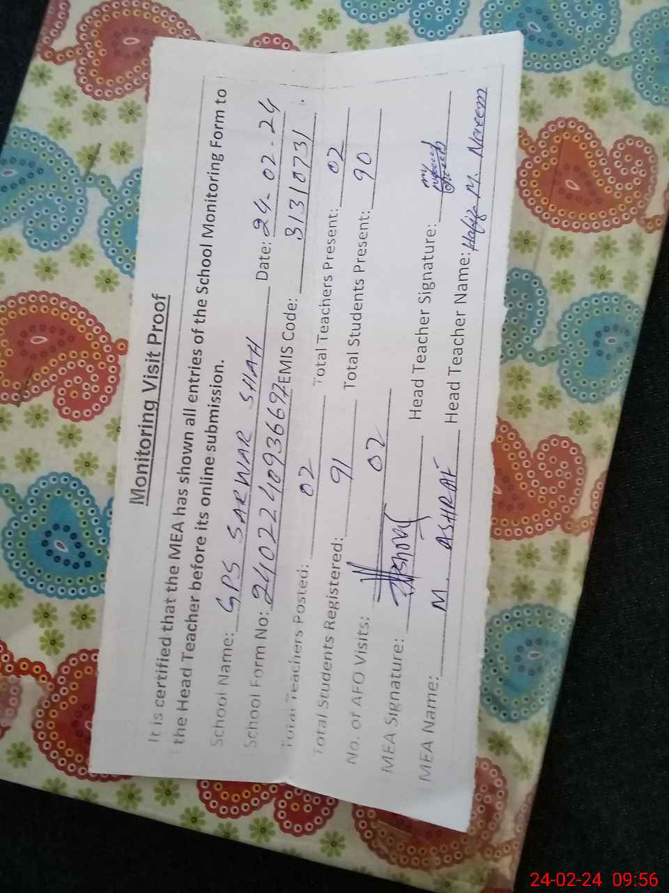 | EMIS Code: 31310731 | Name of School: GPS GHULAM SARWAR SHAH | |||