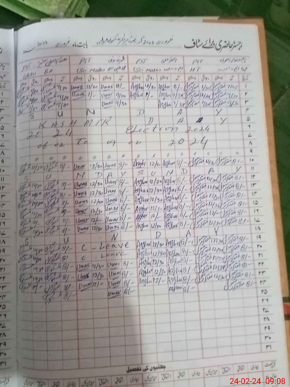 | CNIC | Full Name | Designation | R/C | Absence During Last Calender Month |