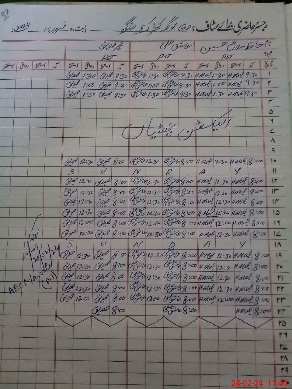 | Name: Ha**** Mu**** Hu**** Designation: (School Headmaster's/Headmistress's) PST Phone/Cell Number: 03**** |