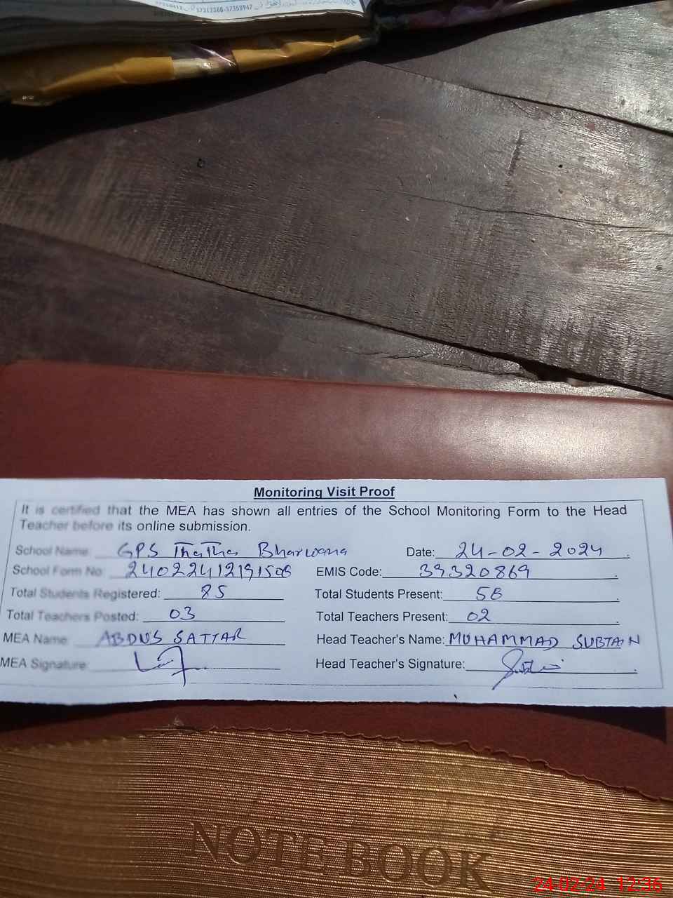 | EMIS Code: 39320869 | Name of School: GPS THATHA BHARWANA | |||