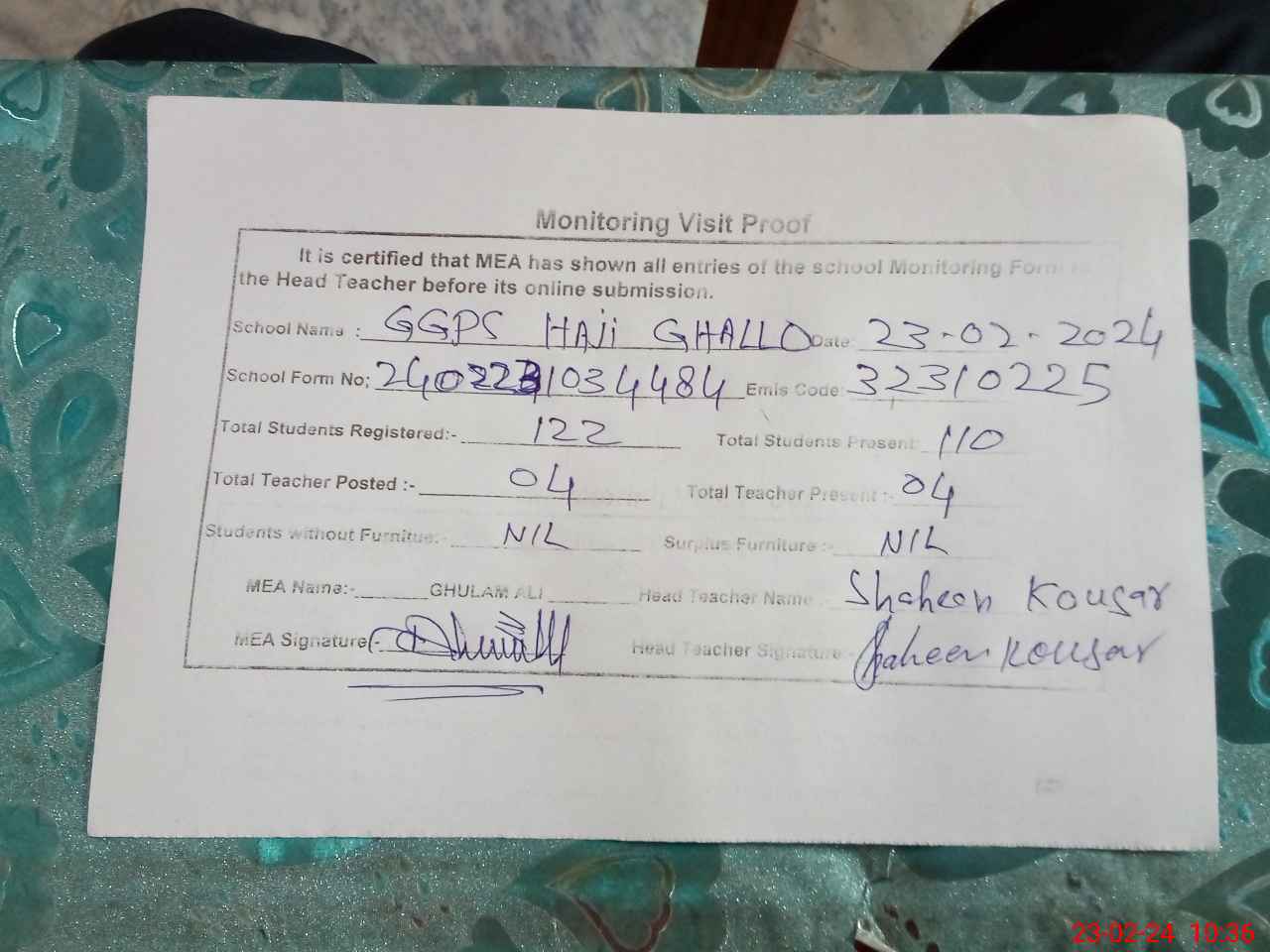 | EMIS Code: 32310225 | Name of School: GGPS HAJI GHALOO | |||