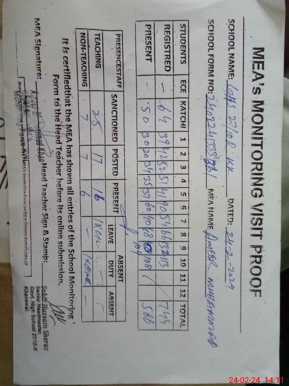 | EMIS Code: 36420022 | Name of School: GHS 27/10-R, KACHA KHUH | |||
