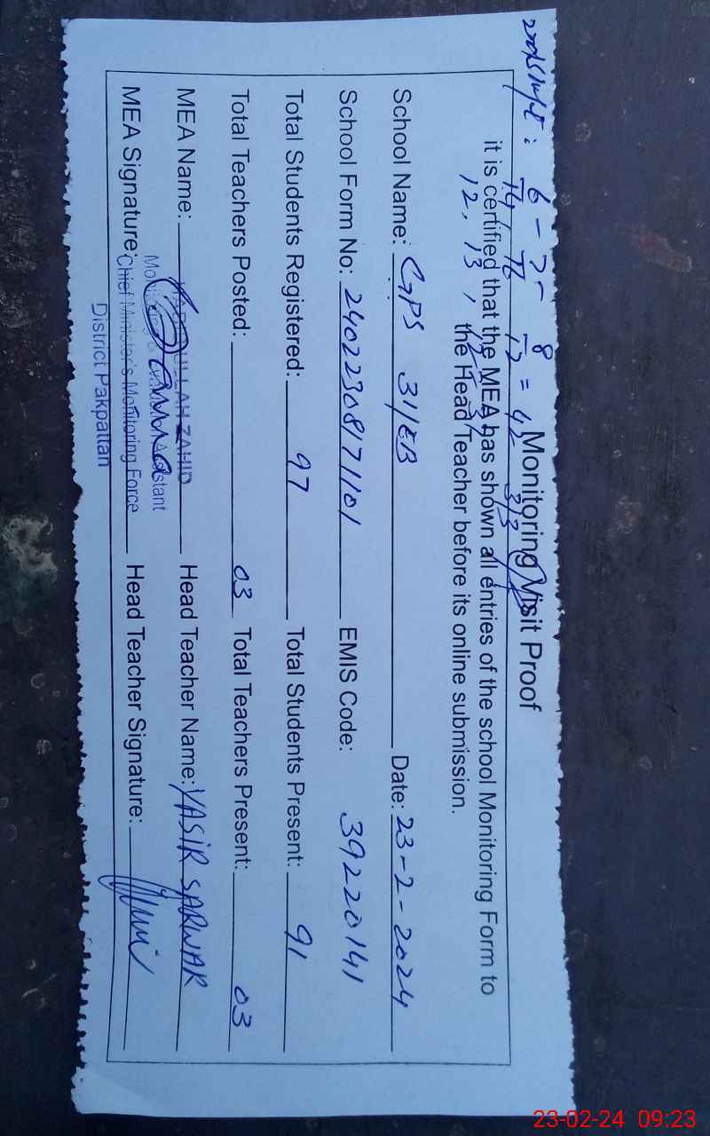 | EMIS Code: 39220141 | Name of School: GPS CHAK NO. 31 EB | |||