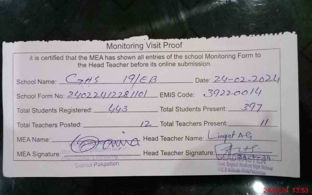 | EMIS Code: 39220014 | Name of School: GHS 19 EB ARIFWALA | |||