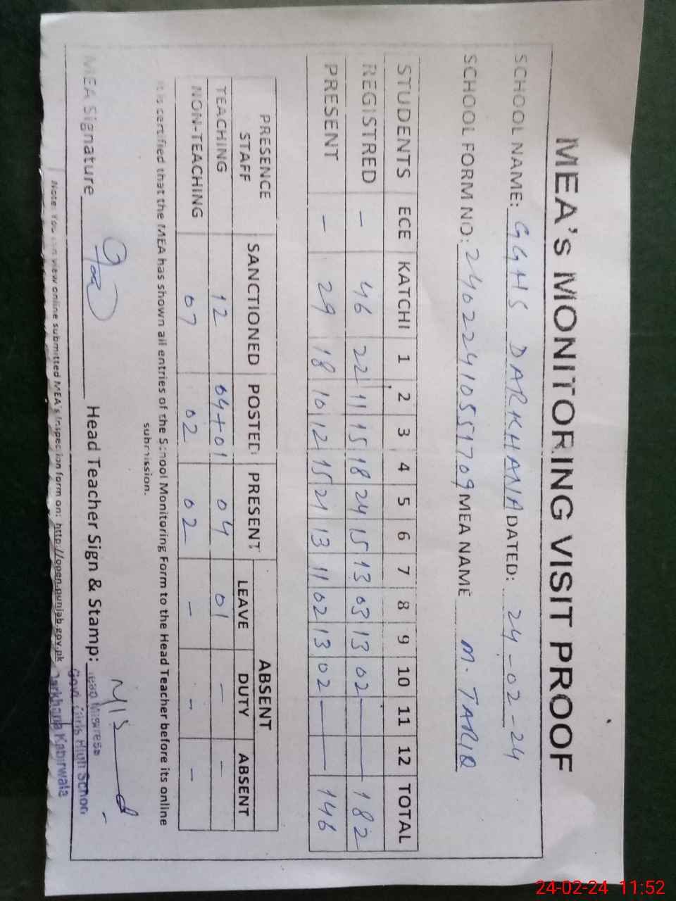 | EMIS Code: 36410038 | Name of School: GGHS DARKHANA, ABDUL HAKIM | |||