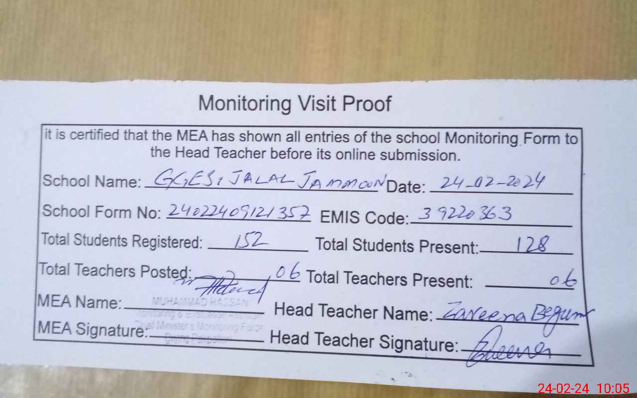 | EMIS Code: 39220363 | Name of School: GGES JALAL JAMMOON POST OFFICE MARI HAZARA | |||