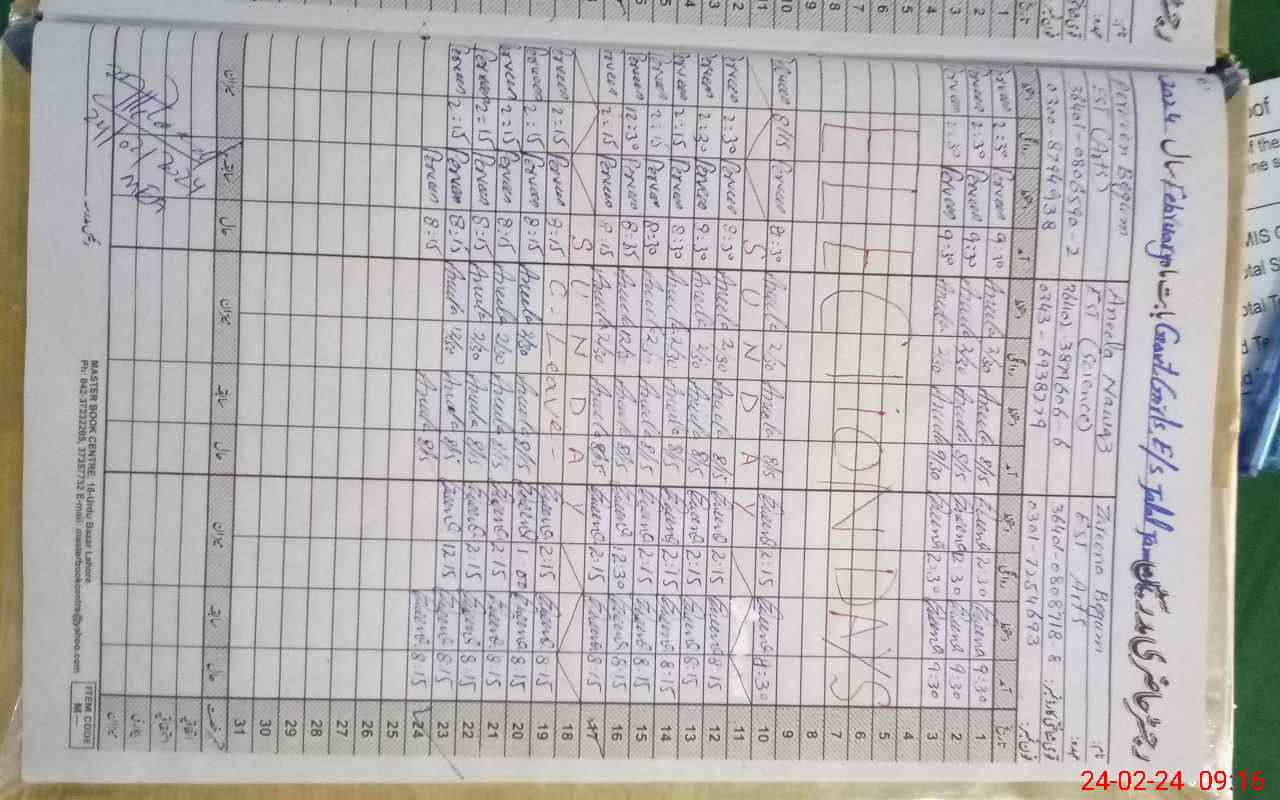 | CNIC | Full Name | Designation | R/C | Absence During Last Calender Month |