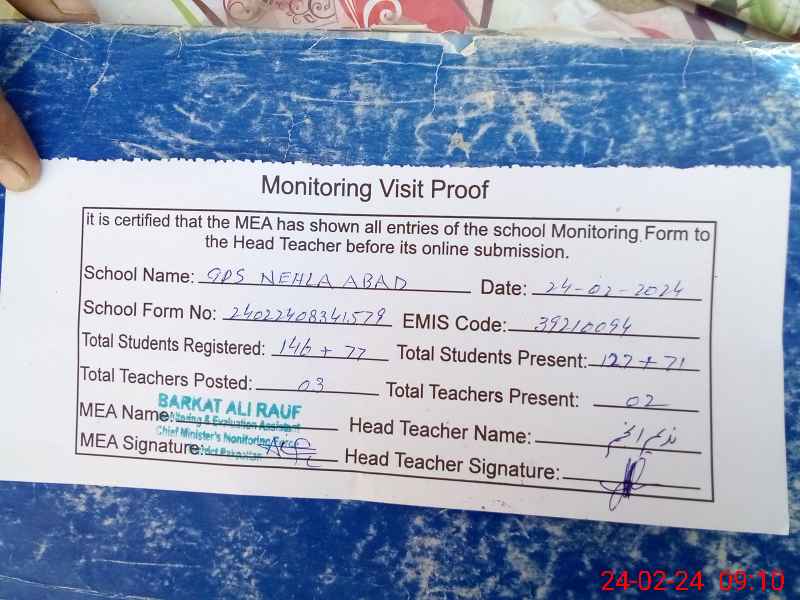 | EMIS Code: 39210094 | Name of School: GPS NEHLA ABAD P/O DHUPAI | |||