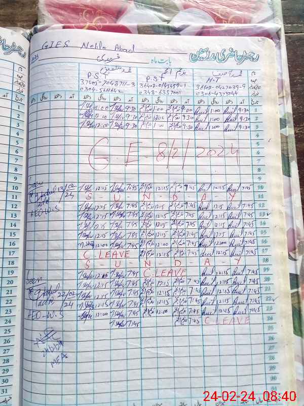 | Name: MAS**** Designation: (School Headmaster's/Headmistress's) PST Phone/Cell Number: 03**** |