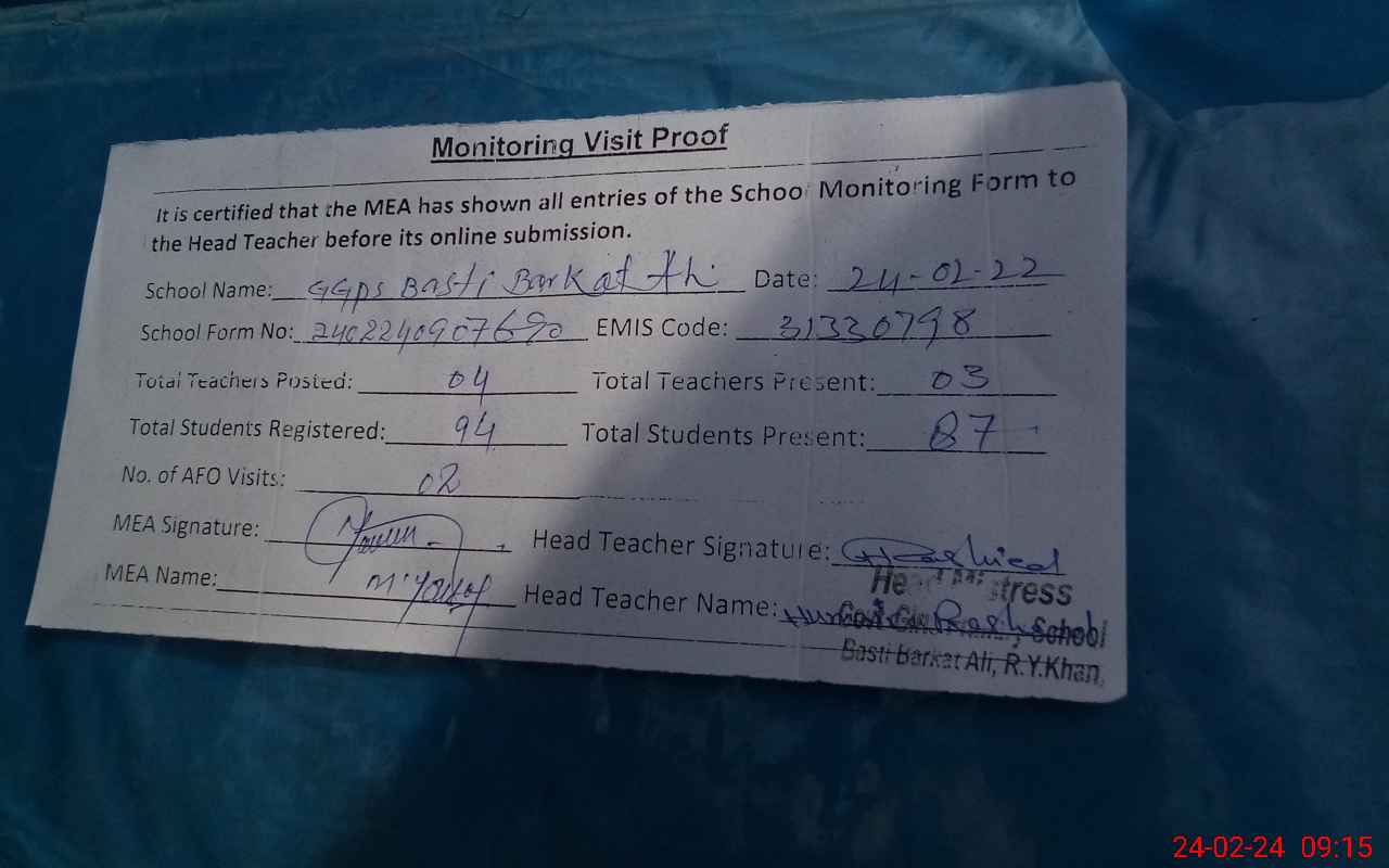 | EMIS Code: 31330798 | Name of School: GGPS BASTI BARKAT ALI | |||