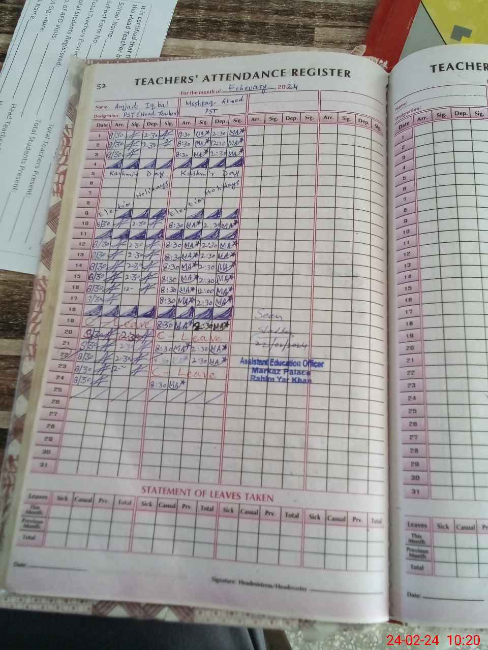 | Name: Mu**** Ah**** Designation: (School Headmaster's/Headmistress's) PST/PTC/JV Phone/Cell Number: 03**** |