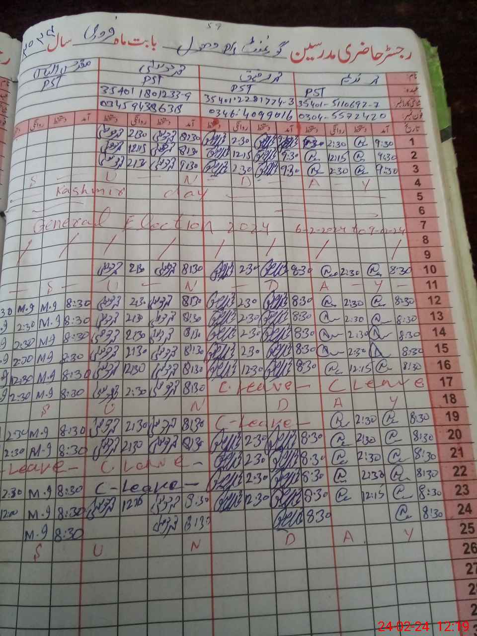| CNIC | Full Name | Designation | R/C | Absence During Last Calender Month |