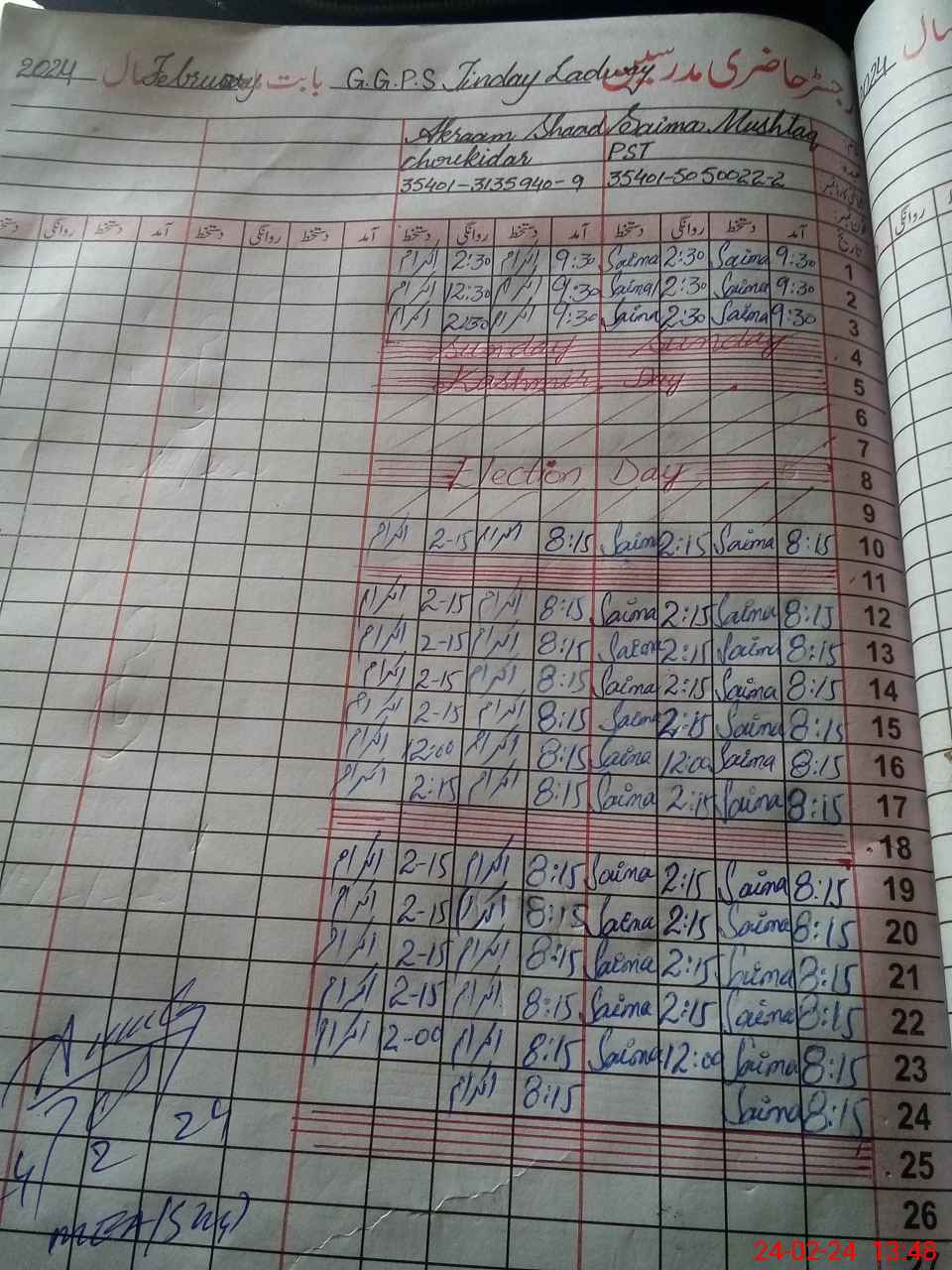 | CNIC | Full Name | Designation | R/C | Absence During Last Calender Month |